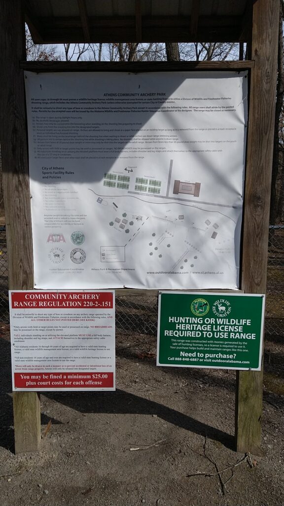 Located in the heart of Athens, Alabama, the Athens Community Archery Park is a pioneering facility that has set a new standard for archery ranges across the United States. Established through a unique partnership between the Alabama Department of Conservation and Natural Resources, the city government, and the Archery Trade Association, this park offers a comprehensive archery experience for both seasoned archers and beginners. Situated directly behind Athens High School, the park is easily accessible and provides ample parking, making it a convenient destination for those interested in honing their archery skills.